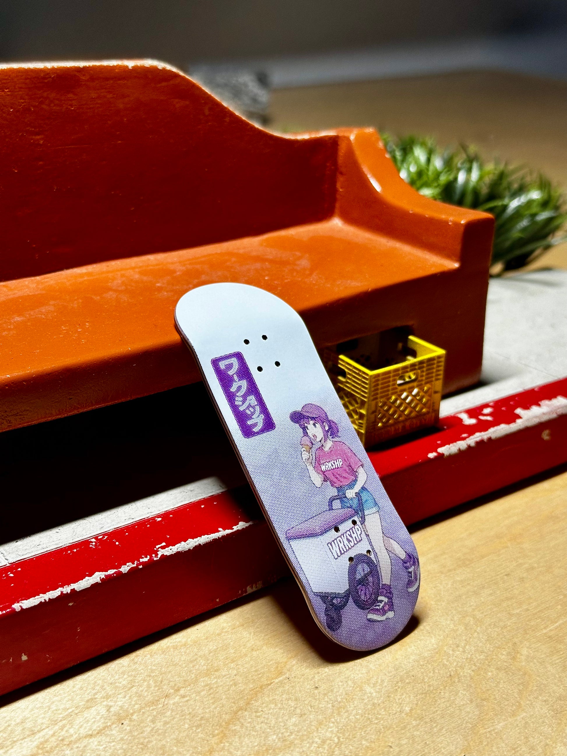 5 ply 100% Maple fingerboard decks with a real wear graphic that has minimalist enthusiasts in mind.